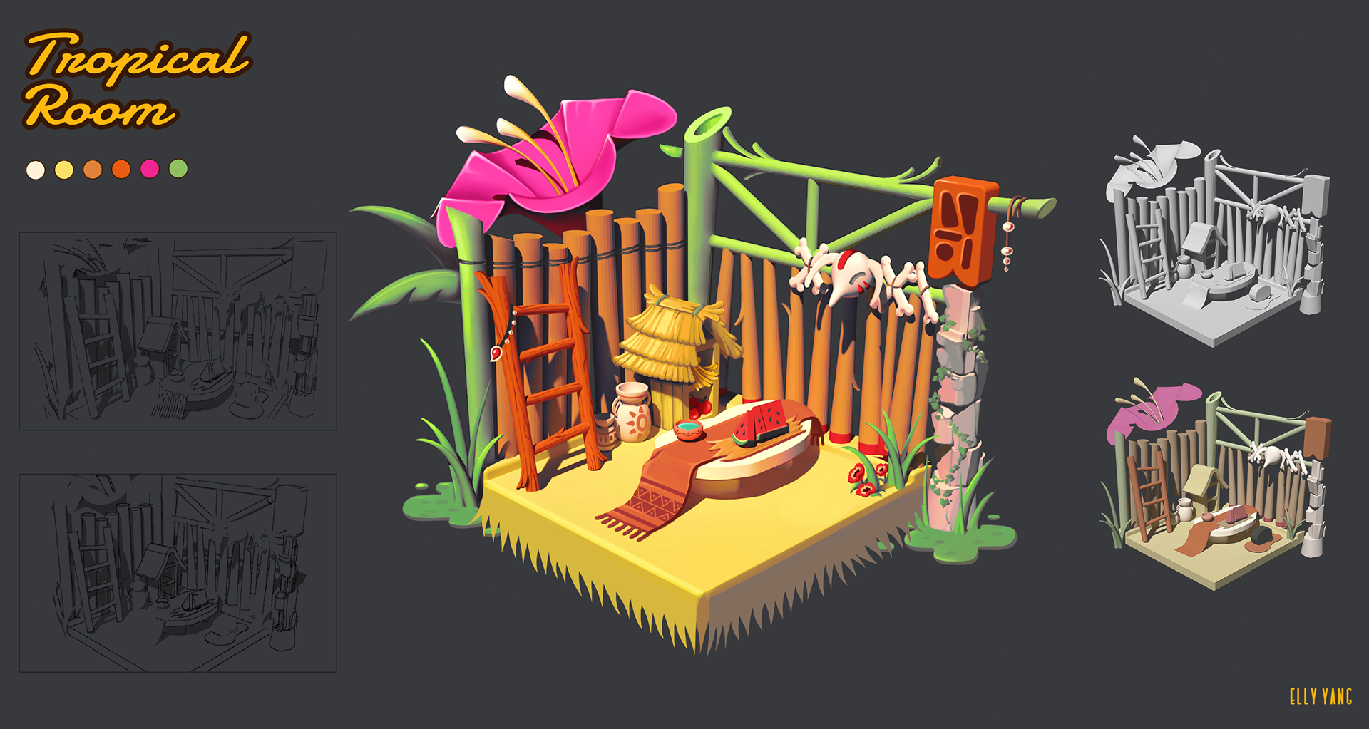 ๐ฅ 2D / 3D Game Building Concept art - Tropical Room ๐ฅ